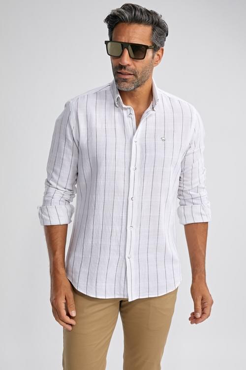 Une chemise rayée en coton fil à fil, respirante et élégante.