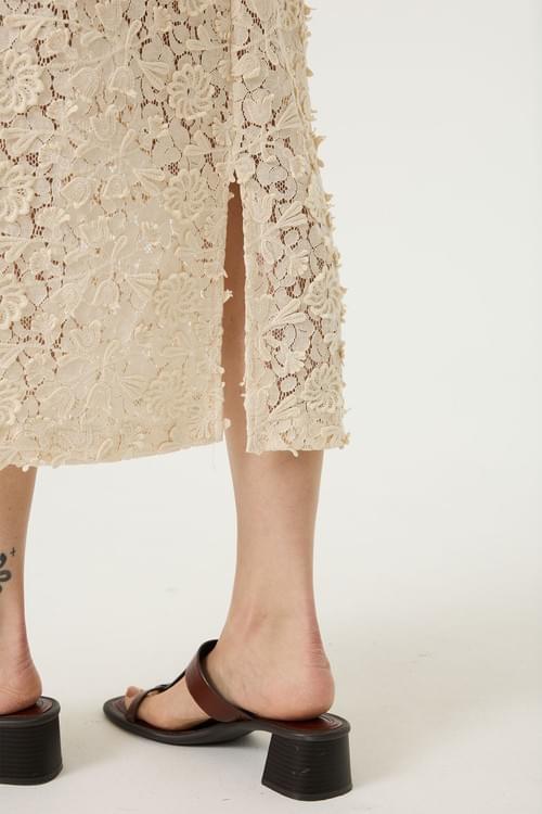 Jupe dentelle doublée Taille élastique Fente à l'arrière