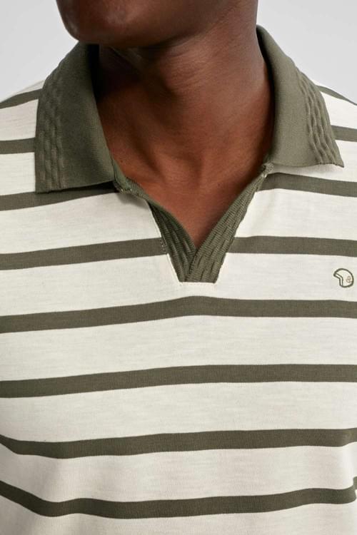 Polo rayé en jersey léger avec col ouvert contrasté. Un modèle casual, confortable et facile à porter.