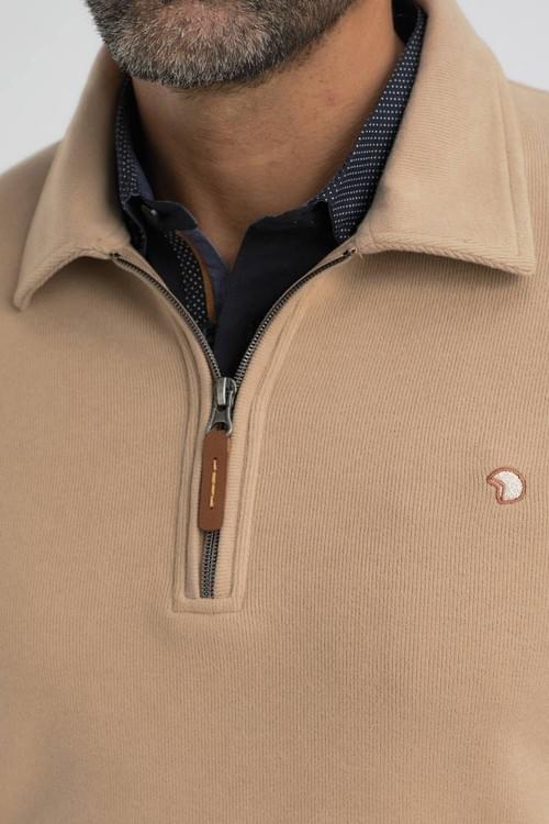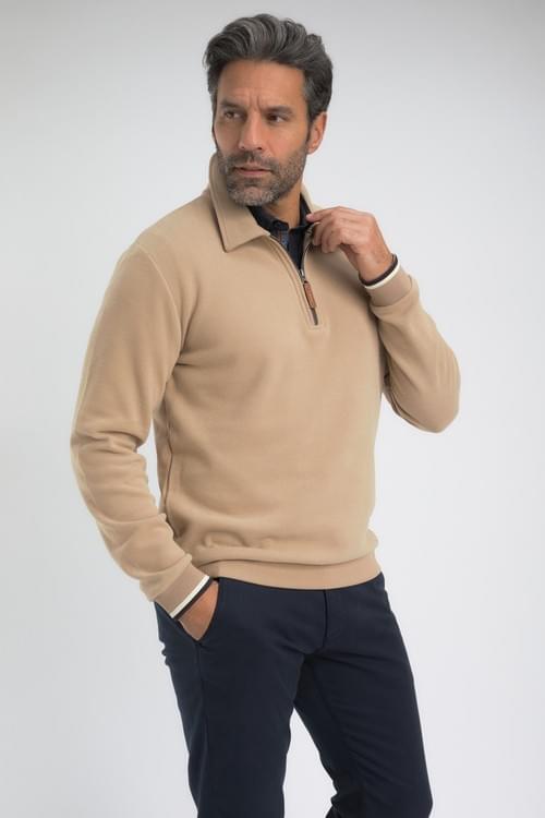 Un pull col montant zippé au style casual chic, pensé pour les hommes qui recherchent confort et élégance au quotidien.