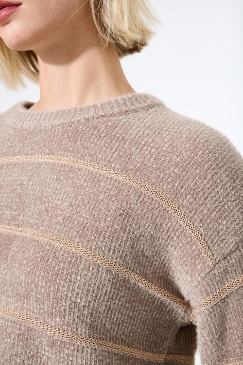 Ce pull possède un col rond, des manches longues et une coupe classique.