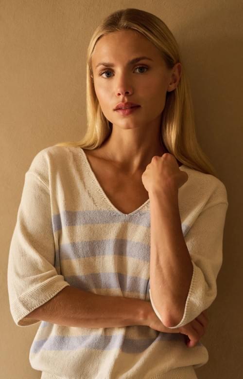 Avec des rayures horizontales bleu ciel, il permet de créer un look frais et décontracté.