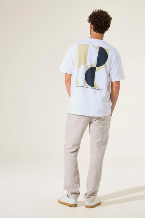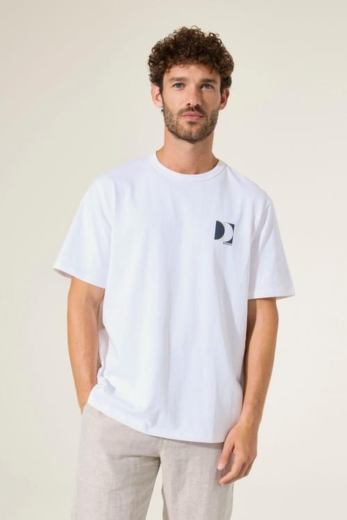 Ce t-shirt à col rond et manches courtes présente une coupe décontractée.